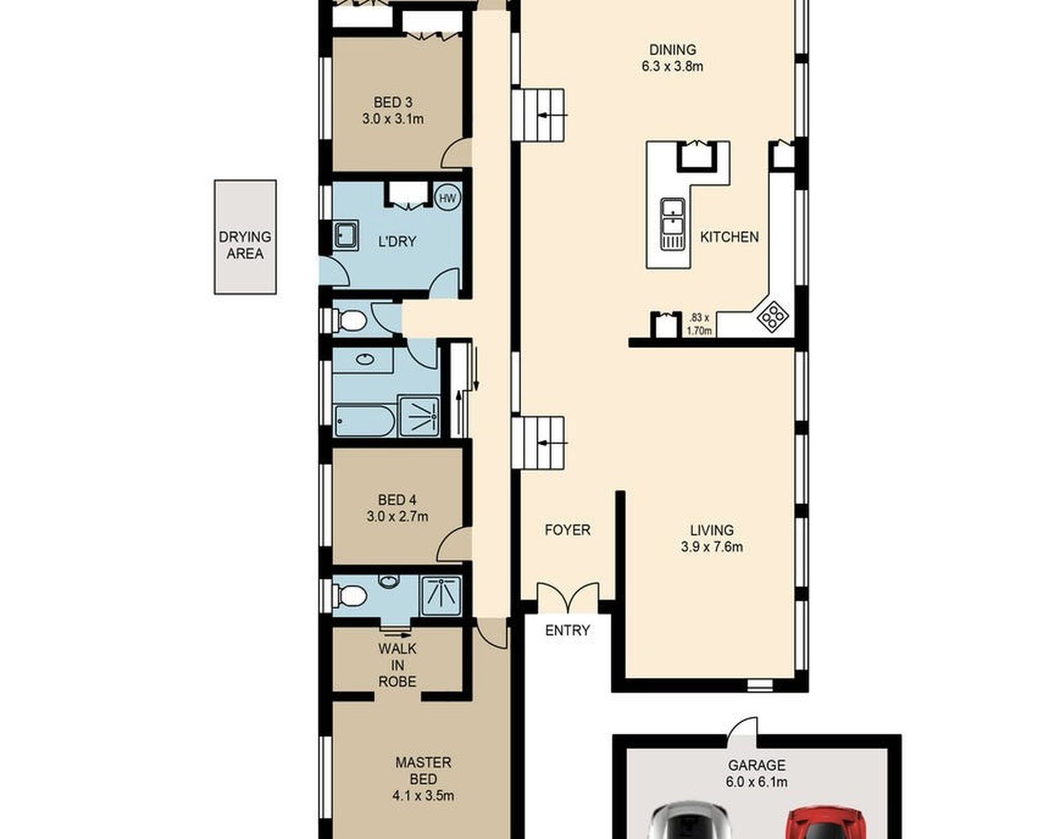 -Laundry with external access to clothesline and side of property