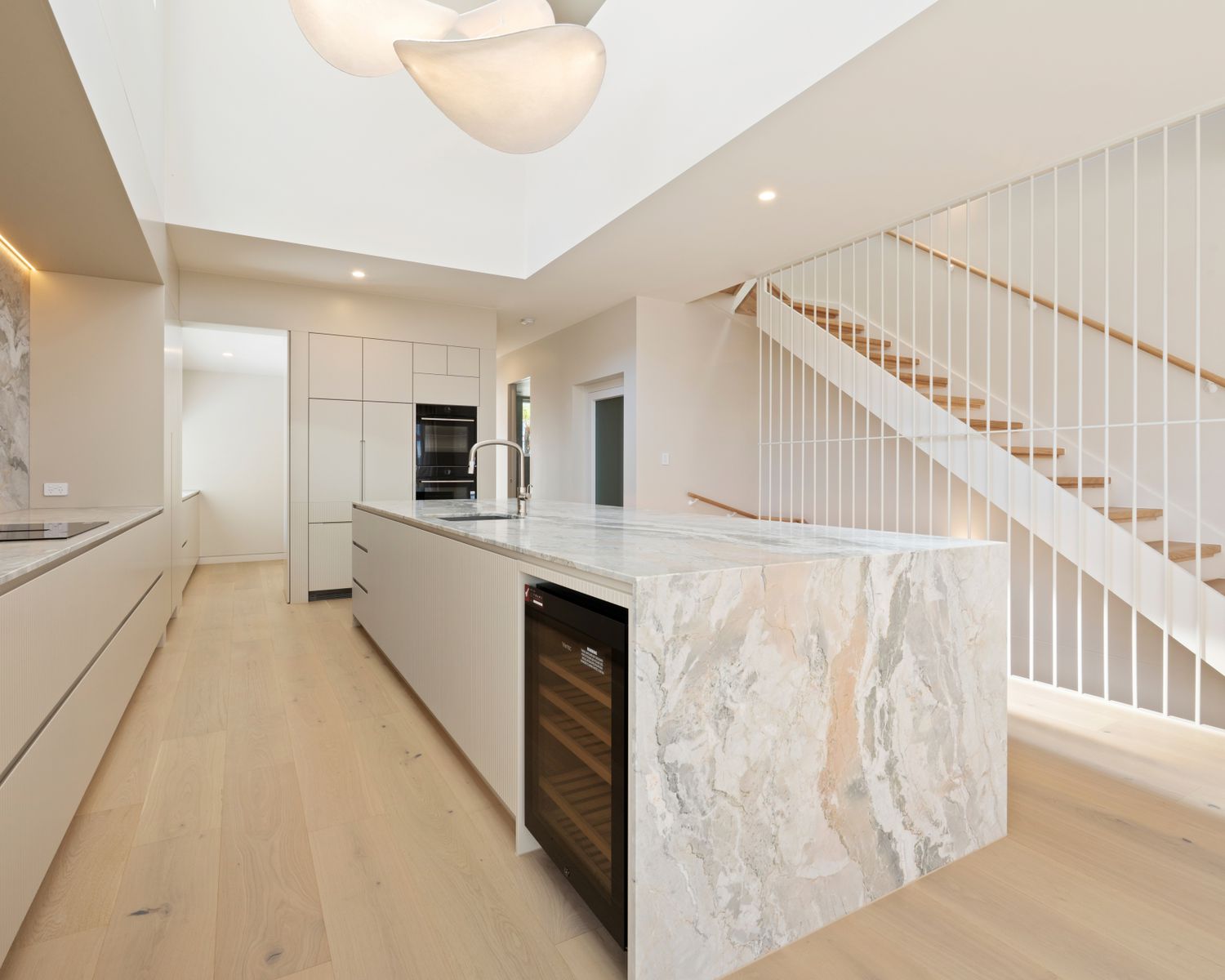-Designer kitchen boasts a butler's pantry, 4m natural stone island bench and splashback, Bosch appliances, integrated Fisher & Paykel fridge/freezer and Vintec Bar Fridge