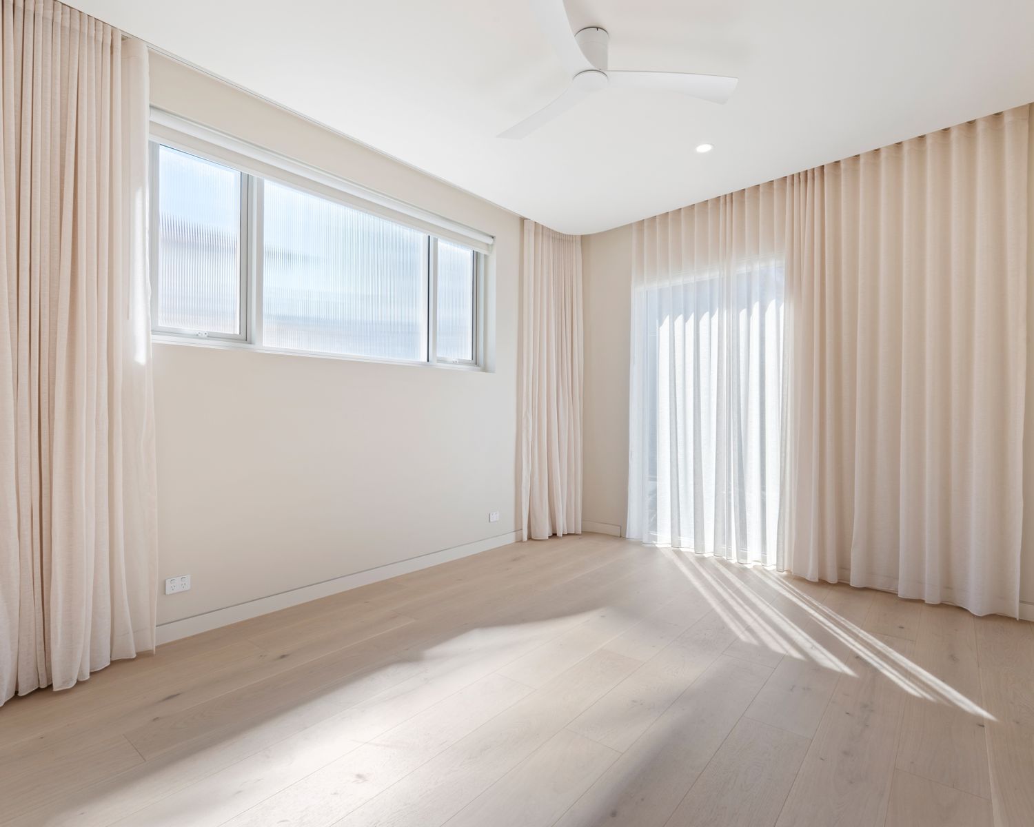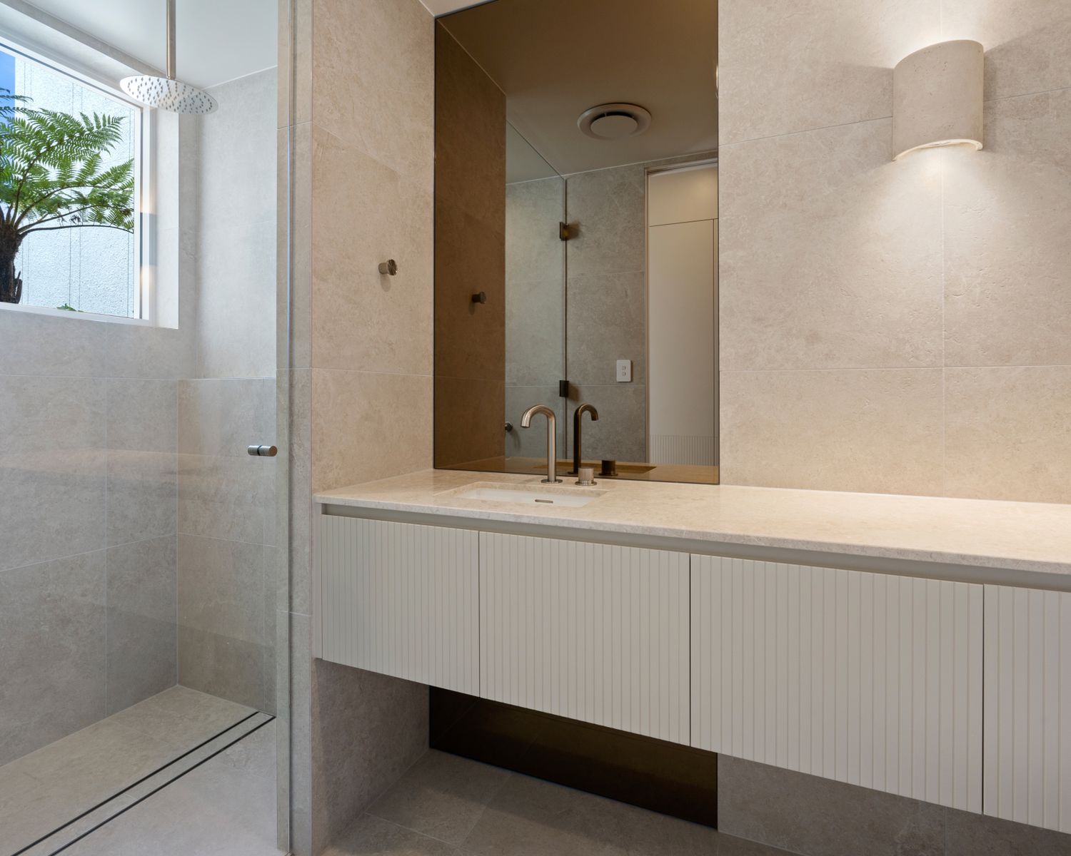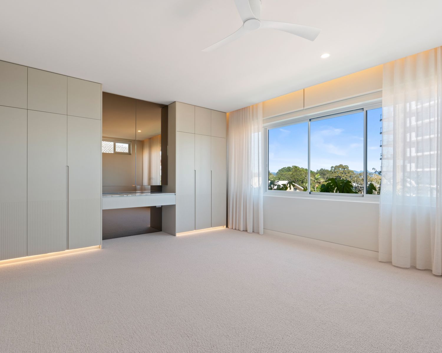 -Master bedroom with custom joinery, motorised blinds, ensuite boasting double vanity