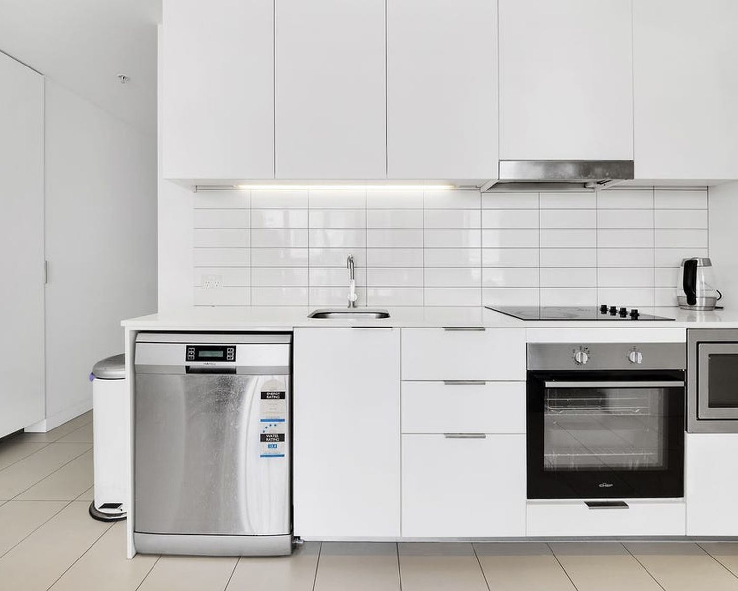 -Modern kitchen with stone benchtops, stainless steel appliances & dishwasher