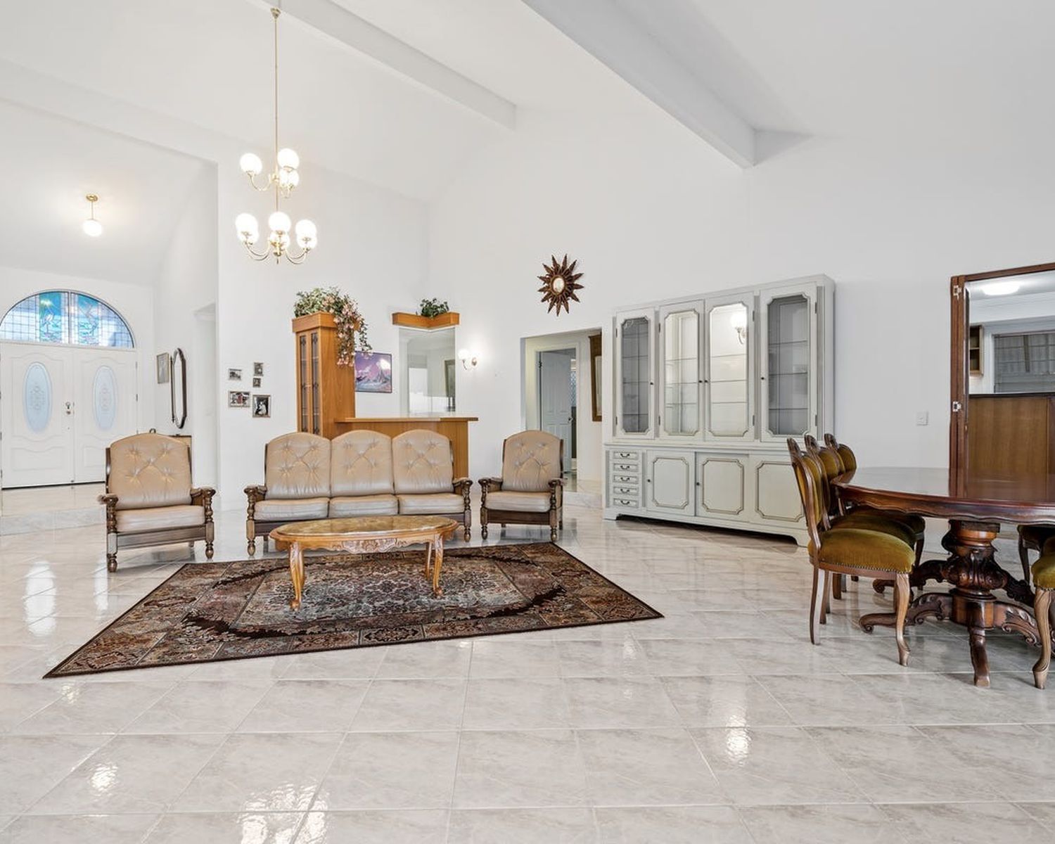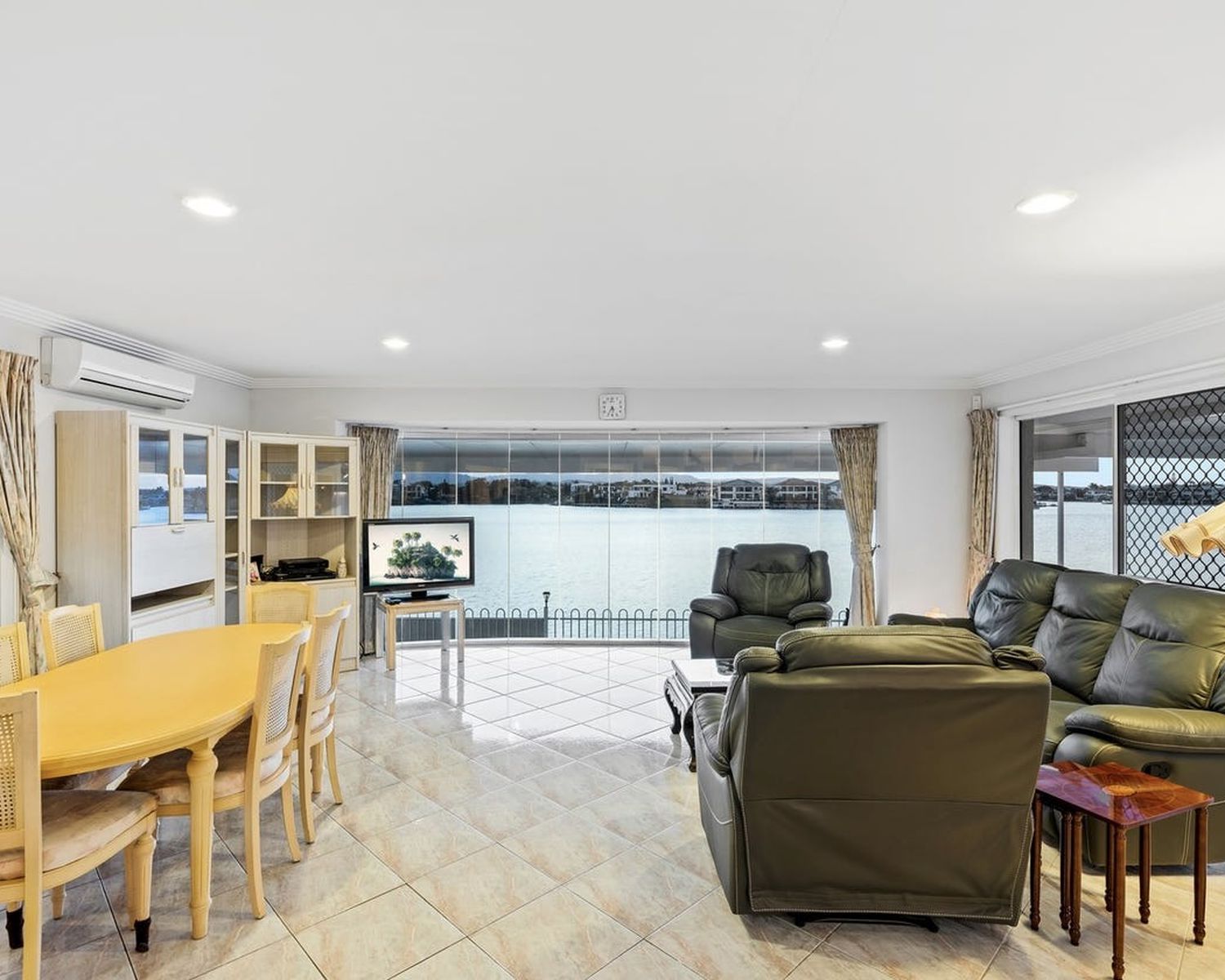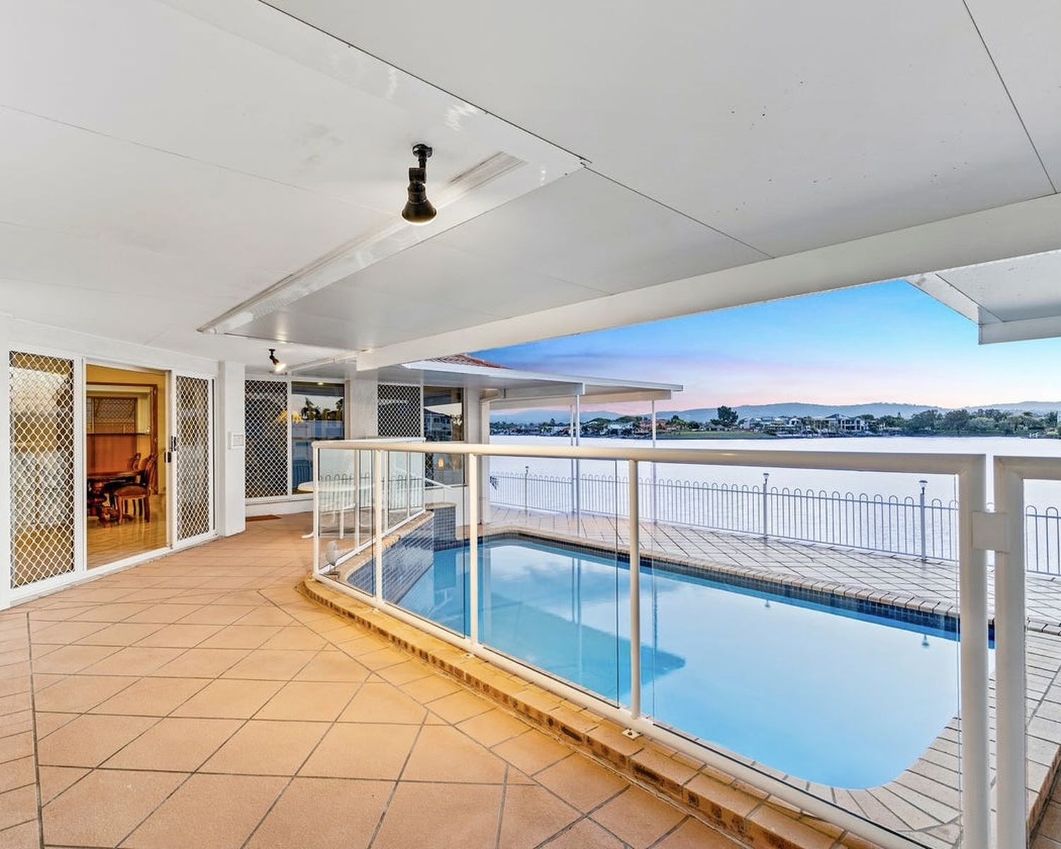 -Expansive open-plan living and dining area, boasting high ceilings and flowing onto the waterfront entertaining terrace