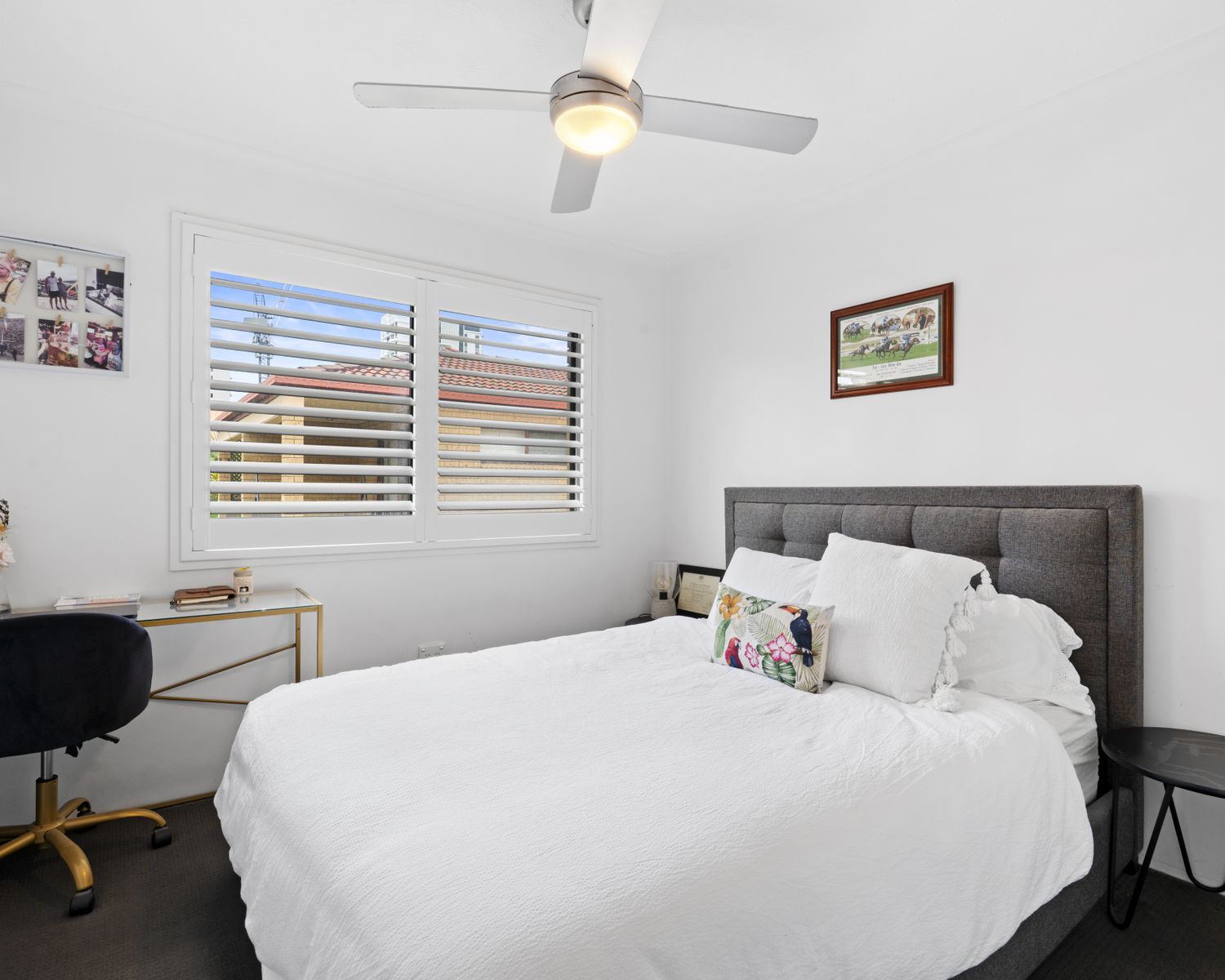 -Two bedrooms, both with ceiling fans