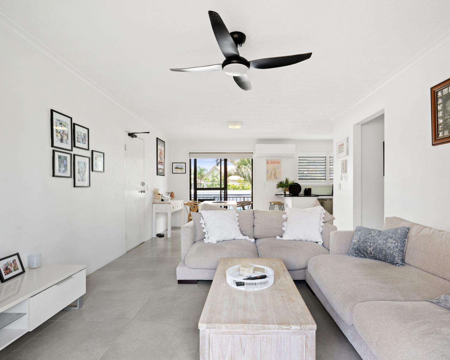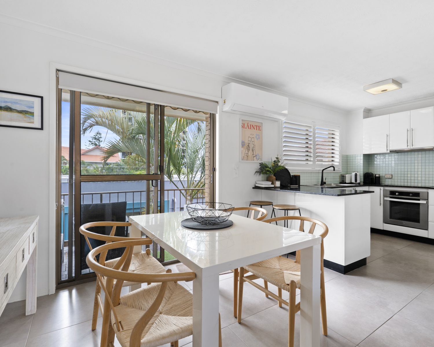 -Open plan living with a balcony on each side. Split system air conditioner