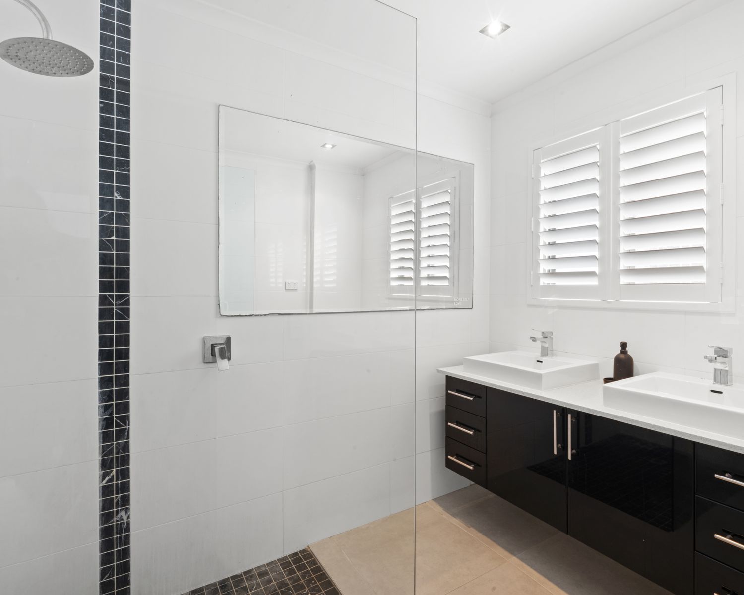 -Large bathroom with double vanity & walk in shower